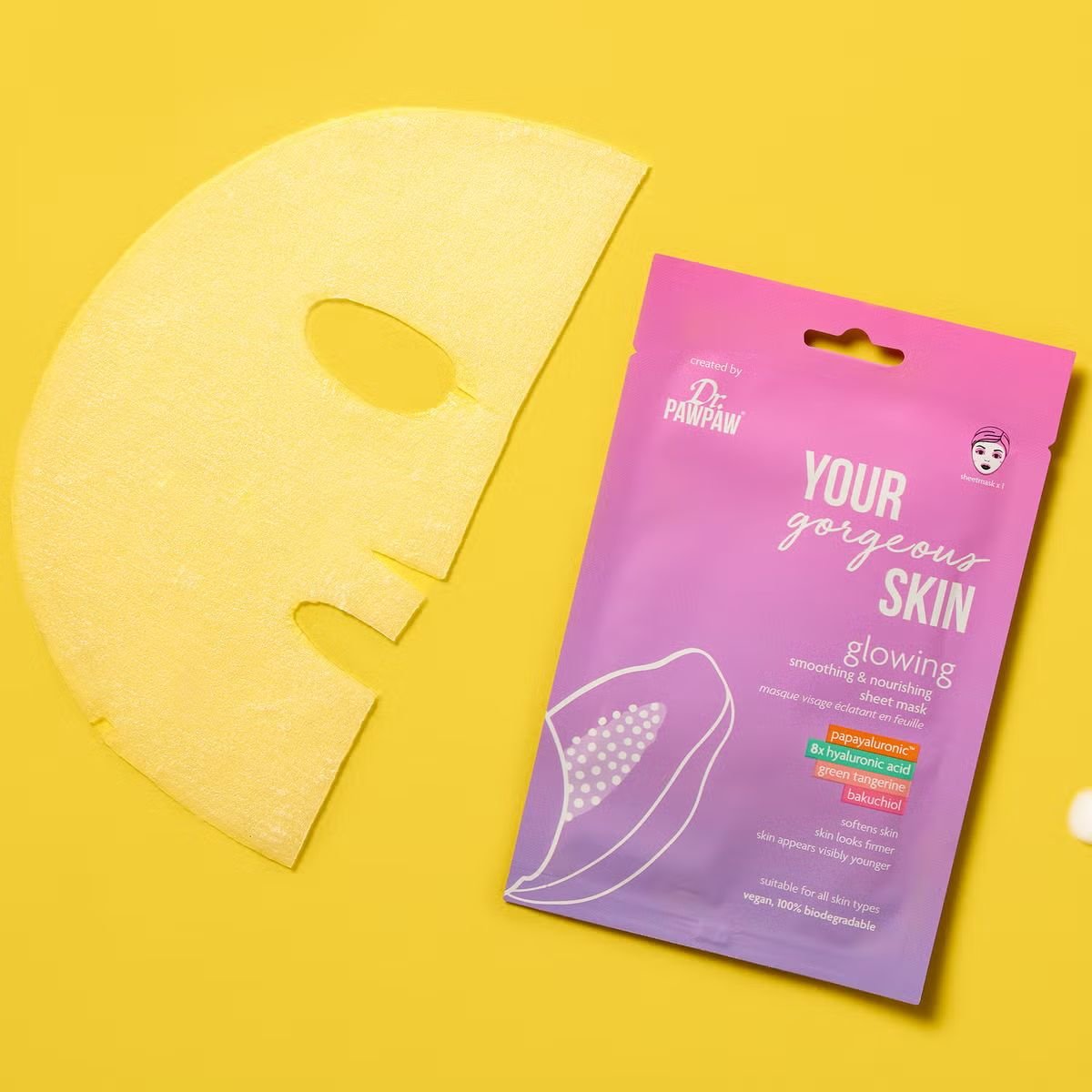 Uno de los elementos más innovadores de la GLOWING – SMOOTHING AND NOURISHING SHEET MASK es su complejo PAPAYALURONIC™.