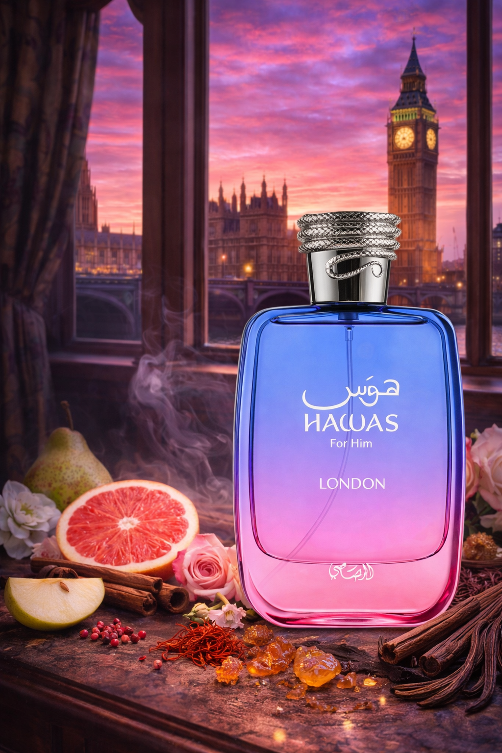 Hablar de Hawas London de Rasasi es entrar de lleno en el universo del perfume árabe moderno, donde la elegancia clásica se fusiona con una sensualidad urbana muy actual.
